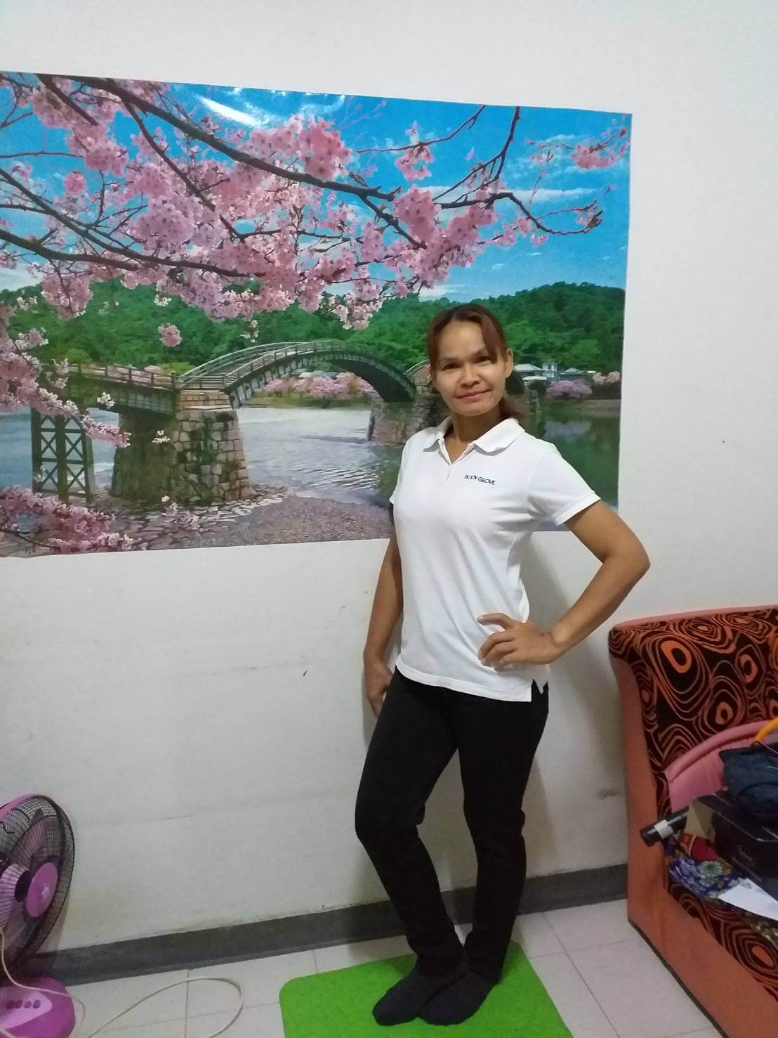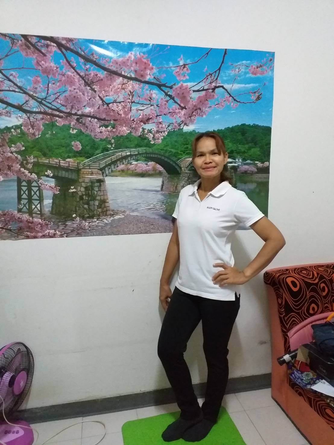 At the moment, she is working as a freelancer (massage therapist) as most of the massage places has closed down and there was not enough workplaces to accommodate the job demand.